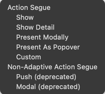 바로 설정한 Action Segue 도 메인 ViewController Drag & Drop 하여 Action 코드 작성!
