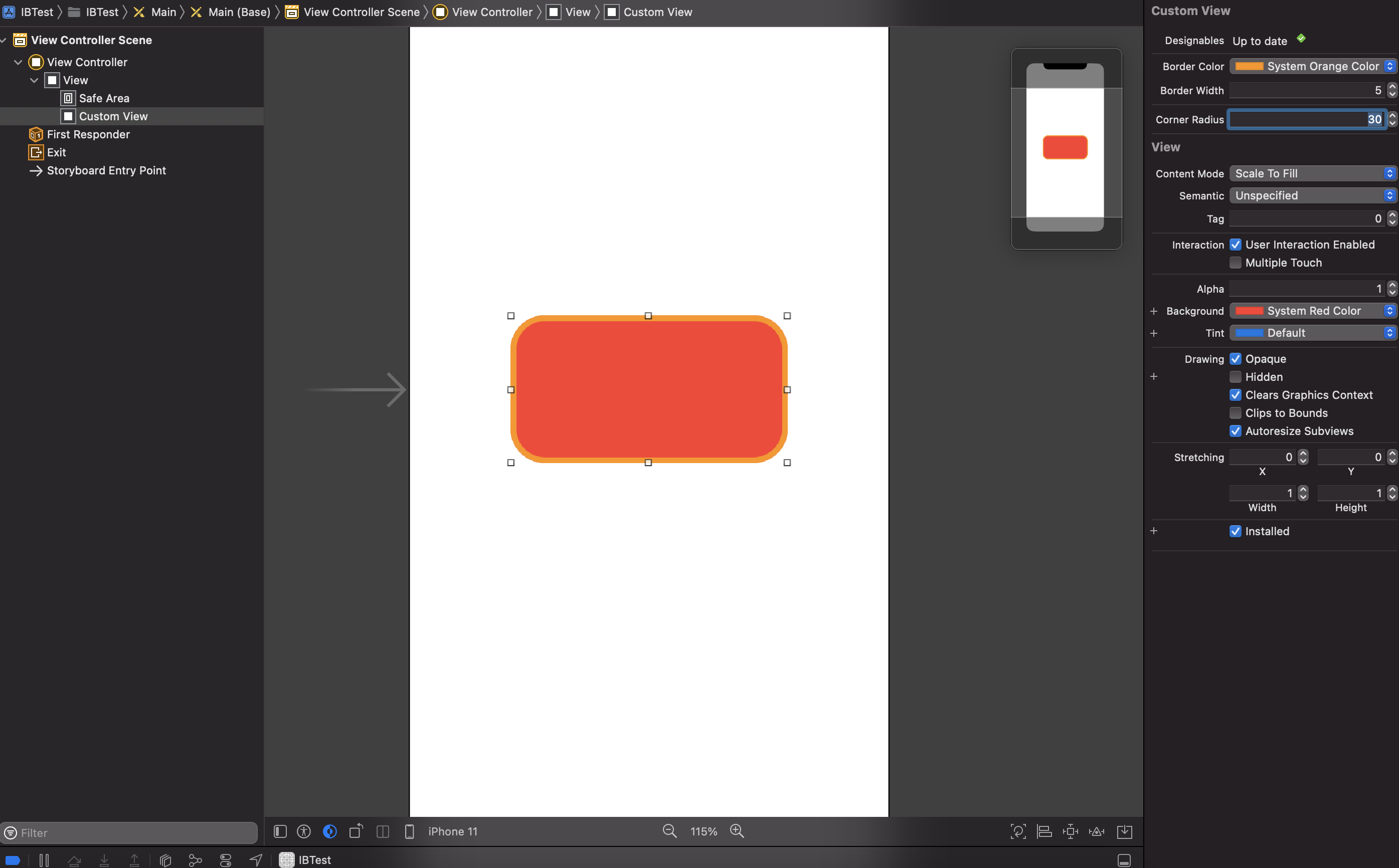 그러고 나서 @IBInspectable 를 사용할 하나의 커스텀 뷰를 만들어 주겠습니다.