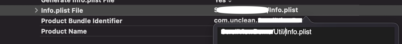 TARGETS -> Build Settings -> Packaging -> Info.plist File 의 경로를 수정해 줍니다.