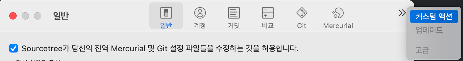 이번 글에서는 Sourcetree 사용 중 [설정] -> [일반] -> [고급] 탭이 비활성화