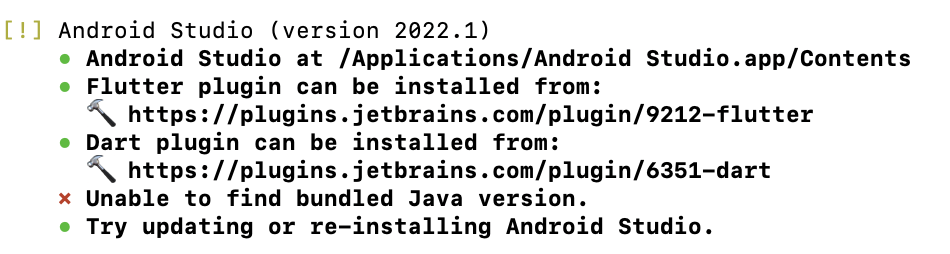 우선 좀 더 자세한 이유를 확인하기 위해 flutter doctor -v 를 실행하면 아래와 같은 이유가 출력됩니다.