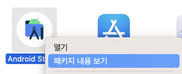 [Application] -> [Android Studio] -> [패키지 내용 보기]