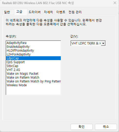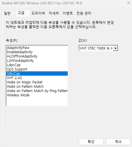 - StbcCap 과 LdpcCap 의 값을 disable 로 변경