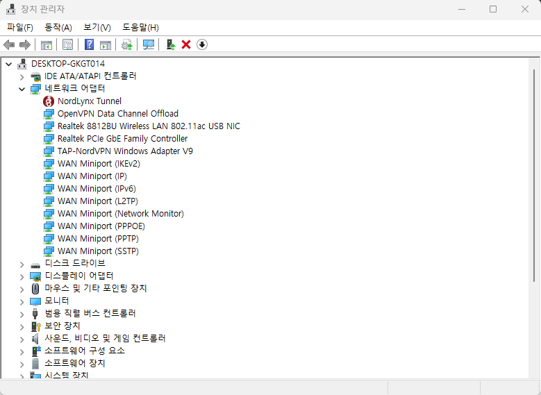 - 검색 -> 장치 관리자 -> 네트워크 어댑터 이동