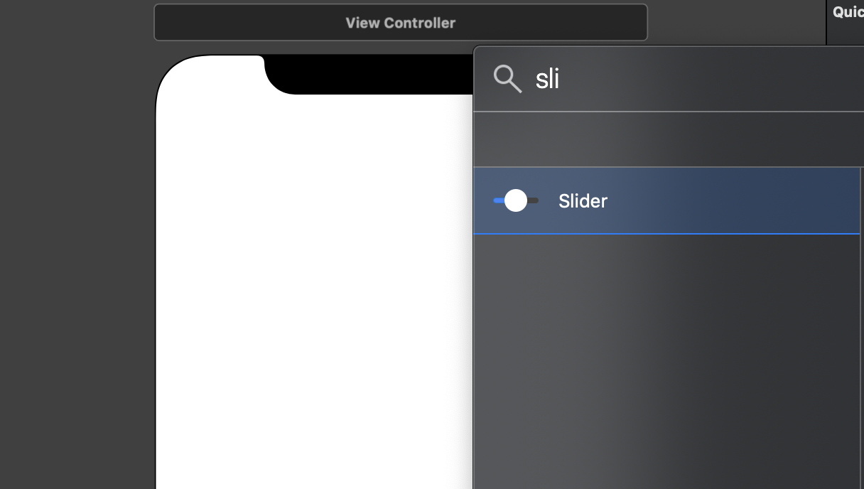 Slider도입은 스토리보드 [+] Slider를 입력하여 간단히 사용할 수 있습니다.