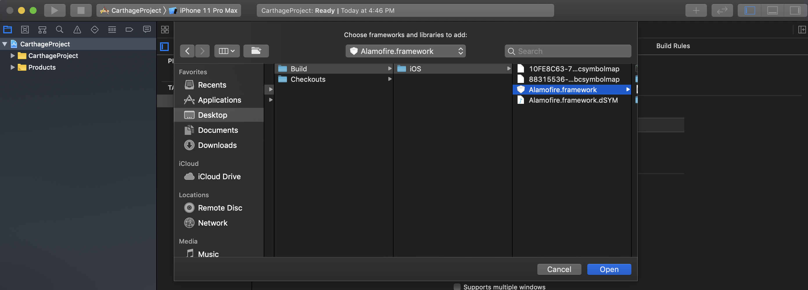 Carthage -> Build -> iOS -> 해당 라이브러리명.framework