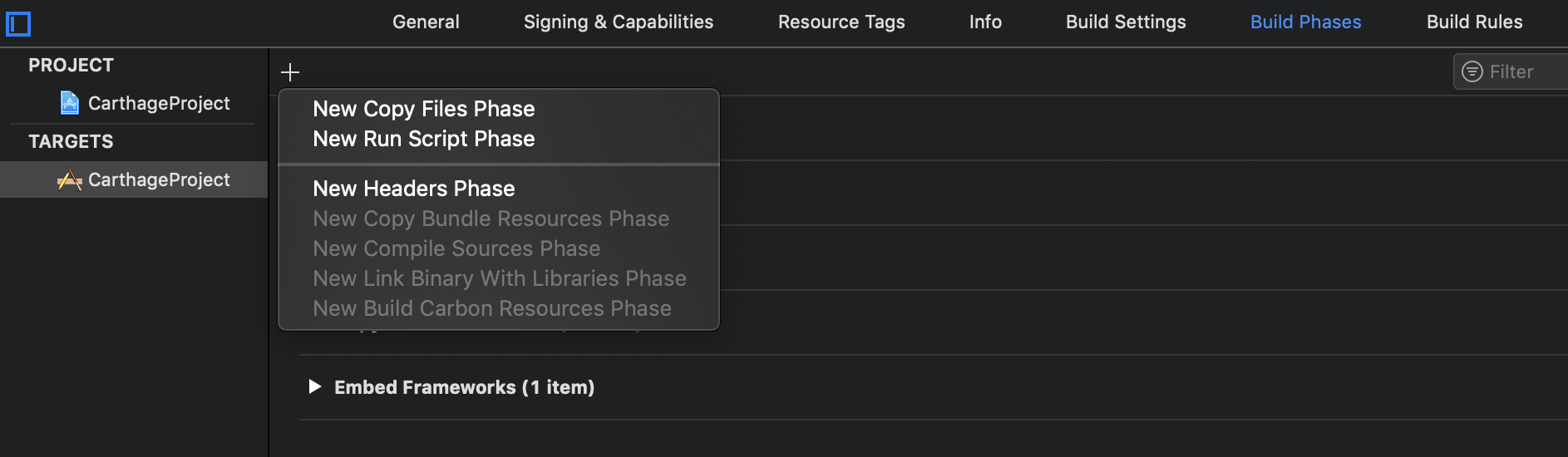 이번엔 [Build Phases] 탭으로 이동해 줍니다.