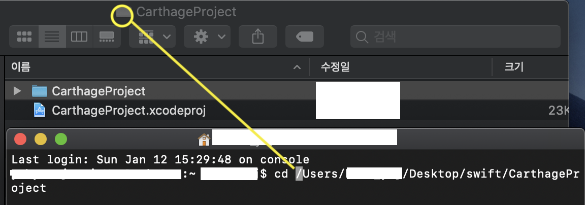 설치가 완료되었으면 터미널에 밑의 커멘드를 실행하여 Carthage를 설치합니다.
