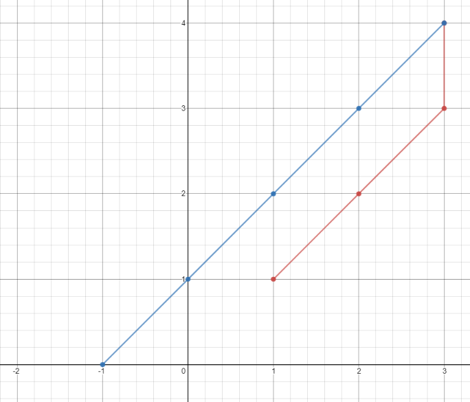 Input: points = [[1,1],[3,4],[-1,0]] Output: 7 Explanation: One optimal path is [1,1] -> [2,2] -> [3,3] -> [3,4] -> [2,3] -> [1,2] -> [0,1] -> [-1,0] Time from [1,1] to [3,4] = 3 seconds Time from [3,4] to [-1,0] = 4 seconds Total time = 7 seconds