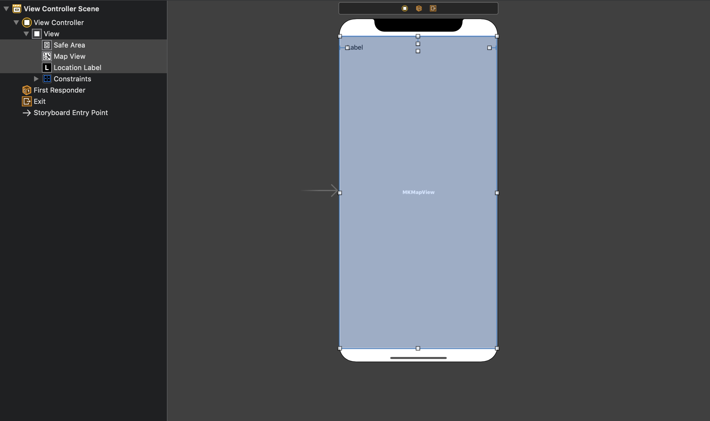 저는 간단히 MapView하나와 추출된 주소를 표시할 수 있는 라벨, 이 두 가지만 추가해 보았습니다.