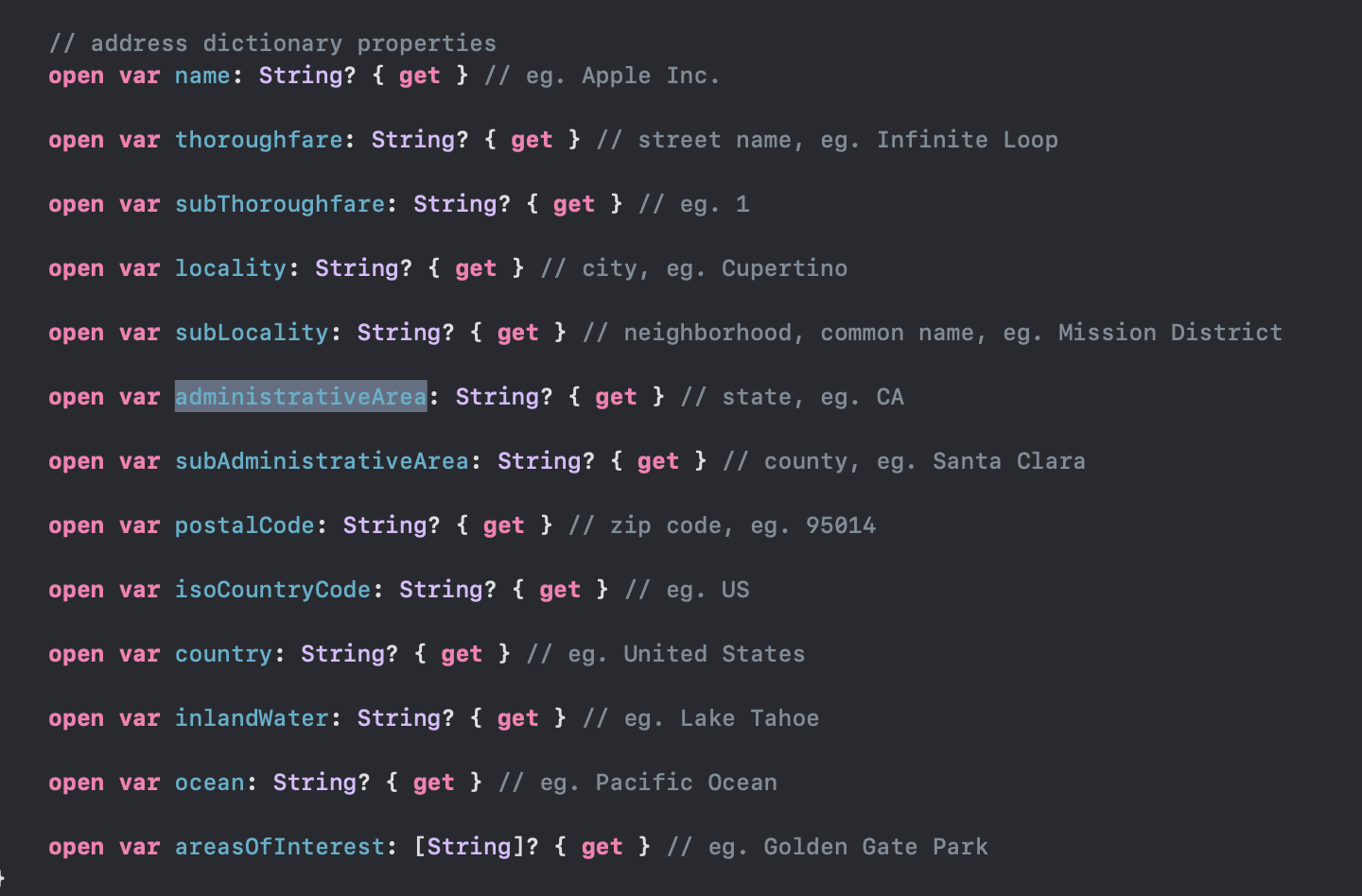 let geocoder: CLGeocoder = CLGeocoder()