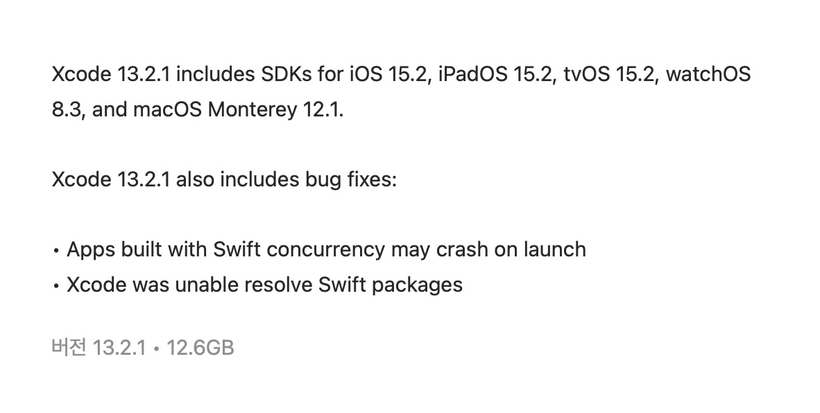 한창 근무 중에 Xcode 최신 버전 업데이트를 요구하는 알림이 와서 13.2 버전으로 업데이트를 진행한 순간!